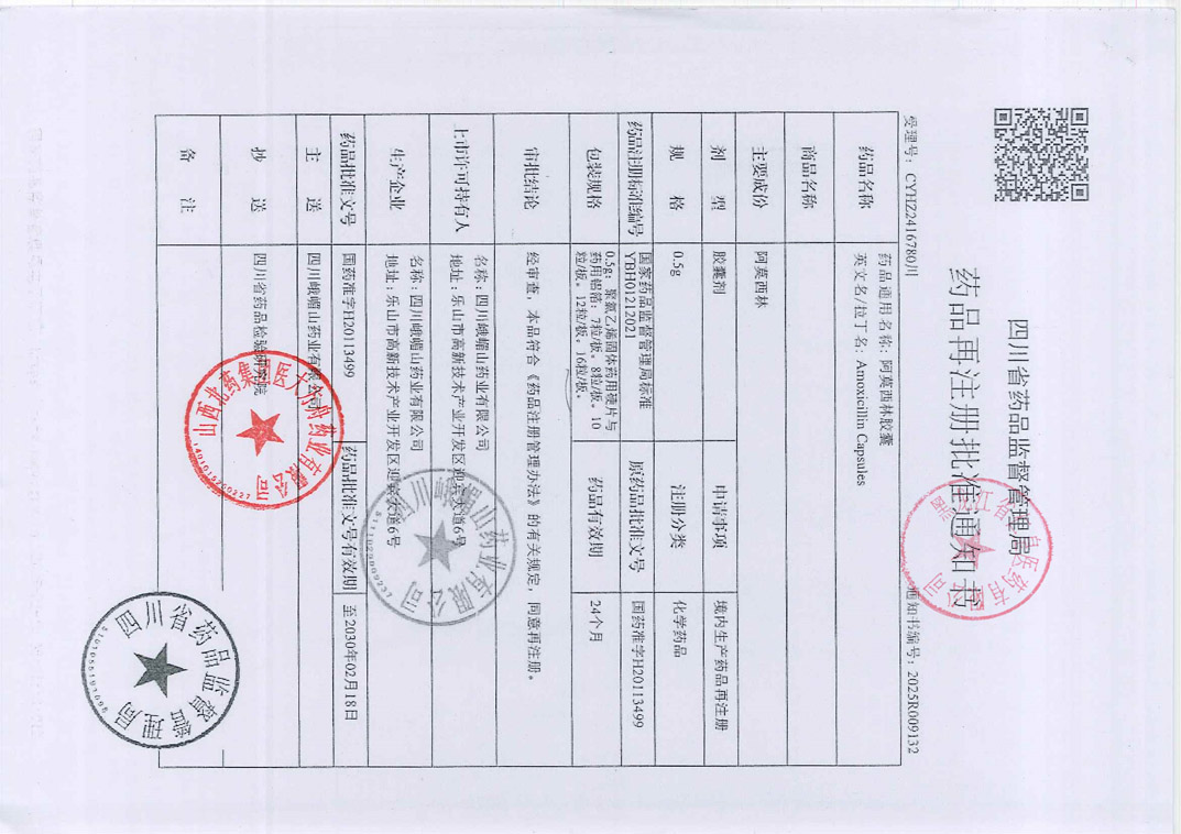 阿莫西林胶囊四川峨嵋