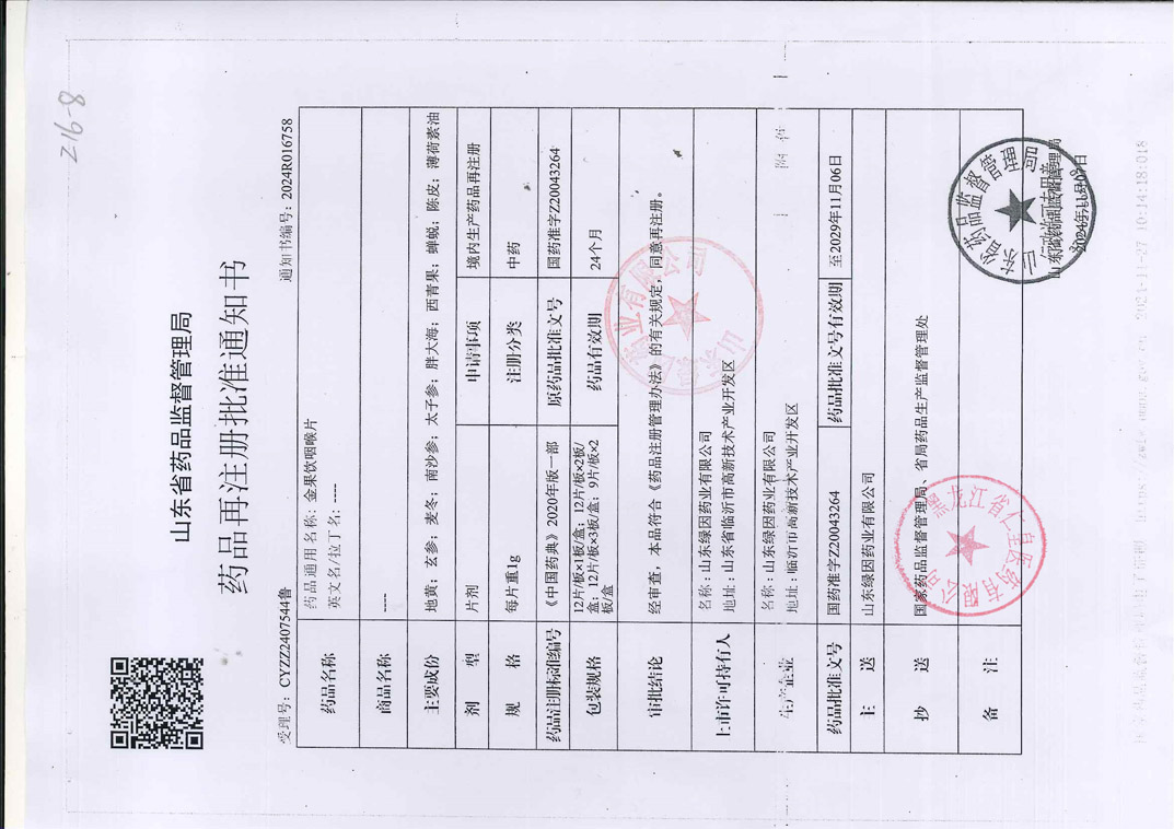 金果饮咽喉片山东绿因
