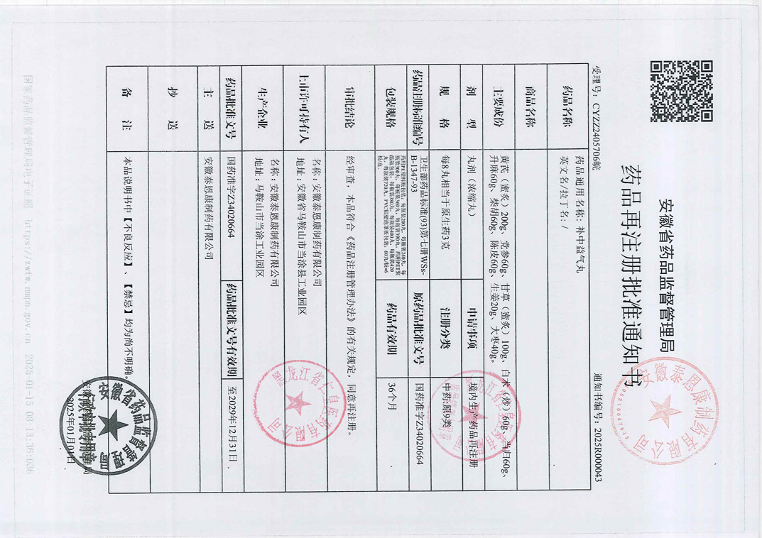 补中益气丸安徽泰恩康