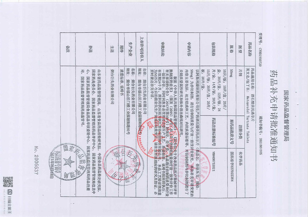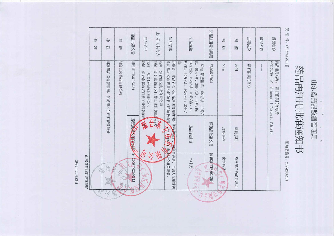 酒石酸美托洛尔片 烟